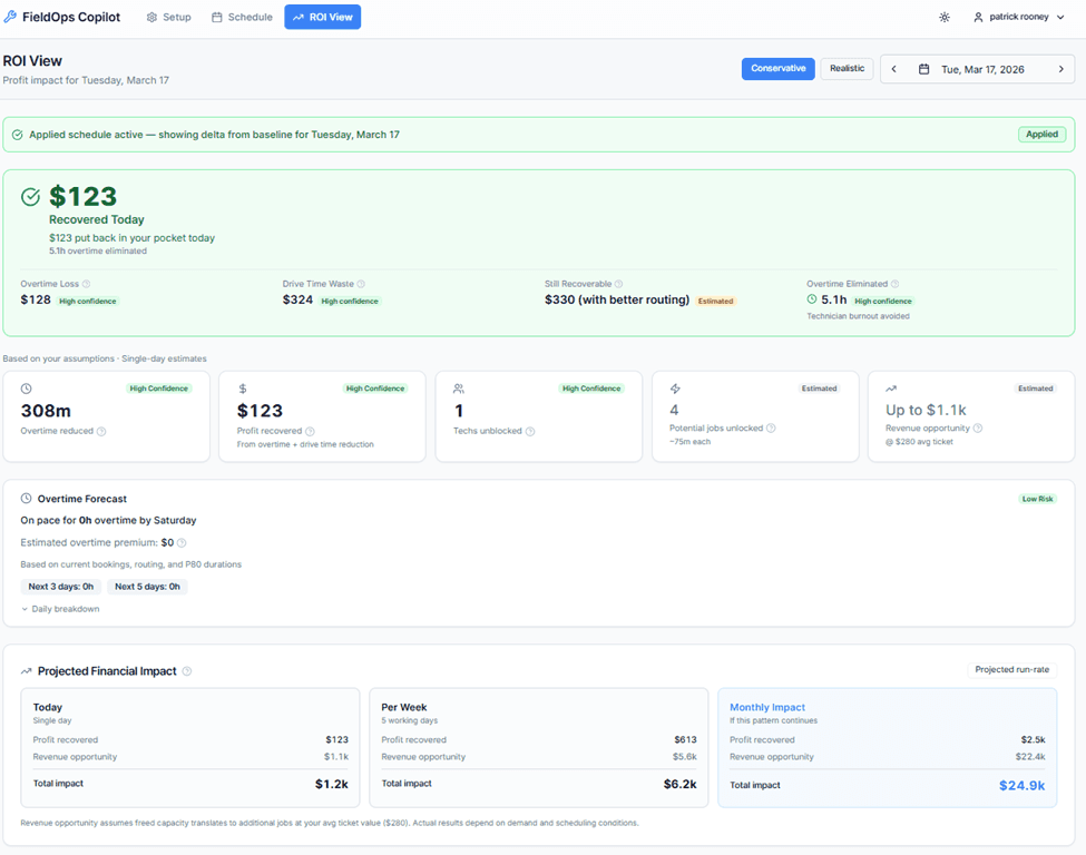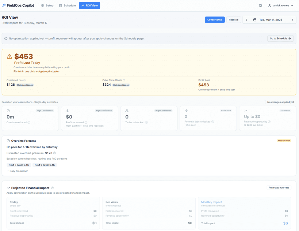 Copilot analyzes your schedule, flags lost profit, and shows exactly what to change.
